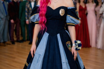 My daughter wore a prom dress she made from her late father’s police uniform. When a girl poured