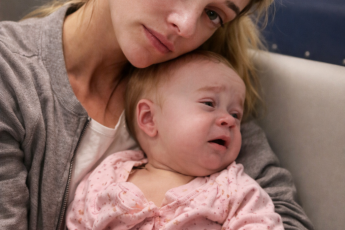 The narrator sat in the crowded waiting room of the A&E department, trying to calm her newborn daughter