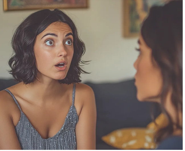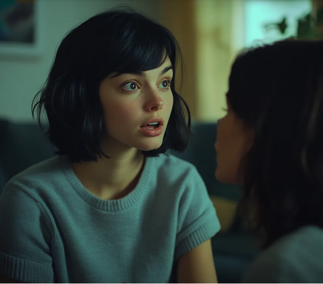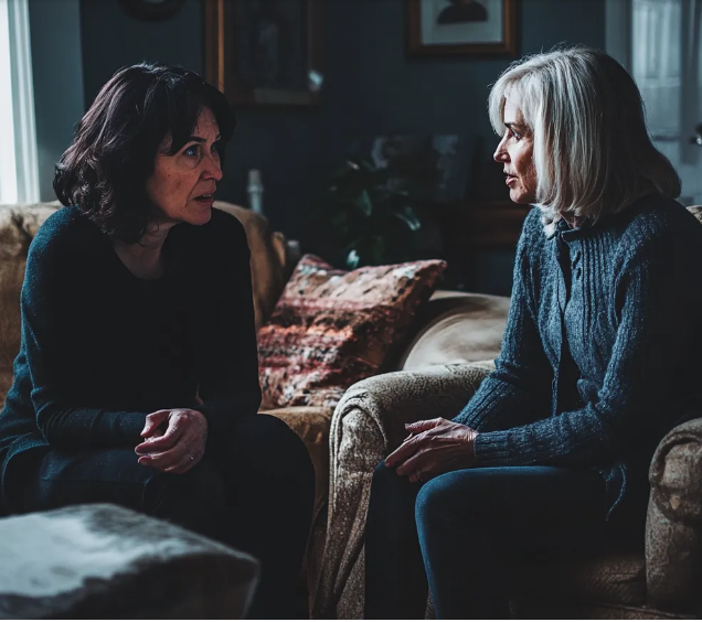 Her face went pale. She slowly sat down, her hands trembling on her knees. She opened her mouth to speak, but no words came out.