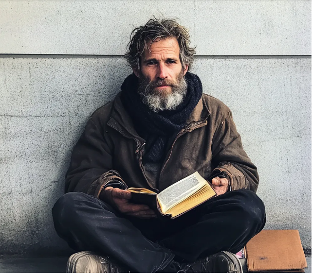 He looked up, startled at first, but then relaxed when he saw me. ‘The shelter is full tonight,’ he said, his voice low and steady. ‘But don’t worry, I’ll be fine.’