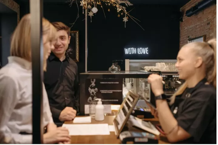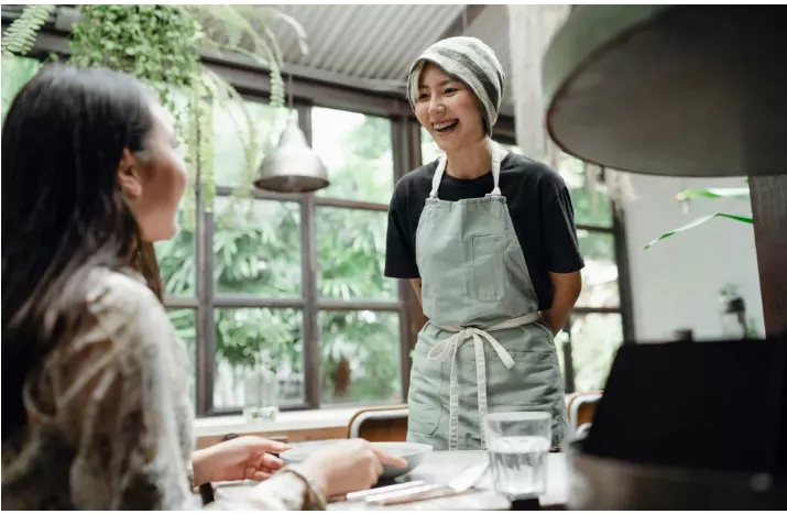 The hostess, a young woman named Sarah, approached the women. ‘Hello, welcome! You’ll have to wait about 20 minutes for a table,’ she said with a polite smile.