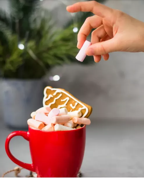 Reaching under the counter, she scooped up a generous handful of marshmallows and placed them in his cup, winking at the boy. ‘Here you go, sweetie,’ she said warmly.