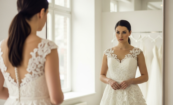 So I did what seemed reasonable to me: I went to a second-hand shop. I searched without pretension, without dreaming of a ‘brand name,’ just something beautiful and neat. And then I saw it: the dress fit as if it had been waiting for me. Simple, elegant, with a perfect fit. I bought it and decided that the origin of the item was not a topic for discussion at the wedding.