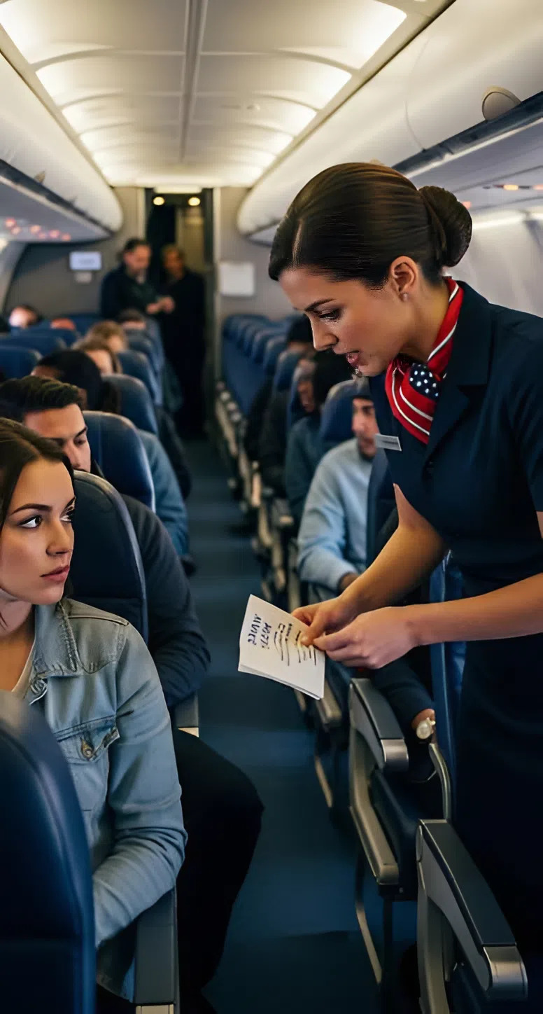 Turning slightly toward the aisle, she called out again to the flight attendant. Not loudly, not dramatically—just clearly enough to cut through the rising tension.