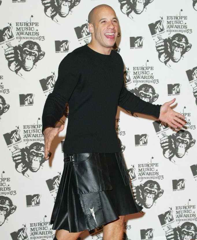 The star of the ‘Fast & Furious’ franchise showed that his confidence was unshakeable when he appeared in a leather kilt at an awards ceremony in 2003. This choice was likely linked to the event’s Scottish venue, but Diesel carried himself so naturally that it was clear he was genuinely enjoying such a bold look.