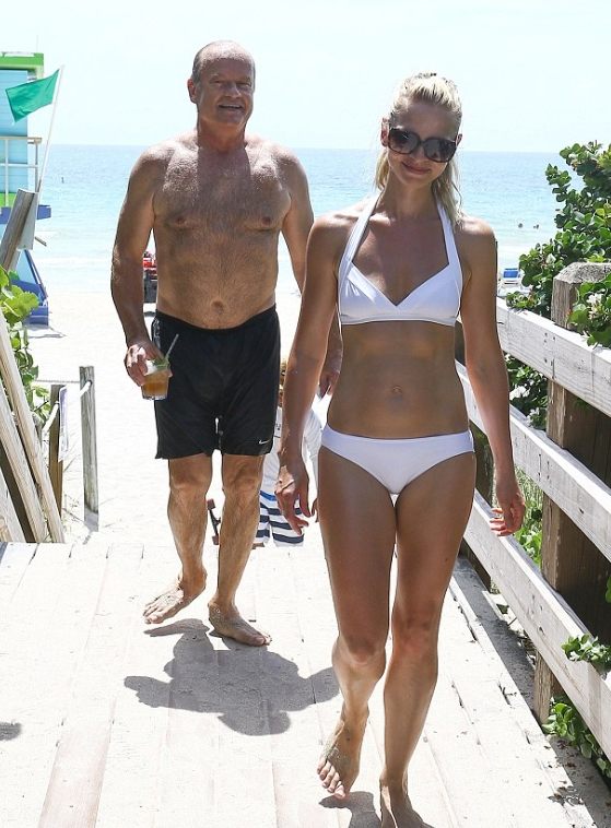 Kelsey Grammer and Kayte Walsh proved once again during their sunny vacation in Miami that an age gap doesn’t have to mean anything to a couple in love. The 60-year-old actor, star of the series Frasier, and his 34-year-old wife looked completely in sync on the beach—strolling along the shore, laughing in the waves, and enjoying carefree, playful moments together. Kayte looked stunning in a white bikini, and just one year after the birth of their second child, she looked great, in excellent shape, and was literally glowing.