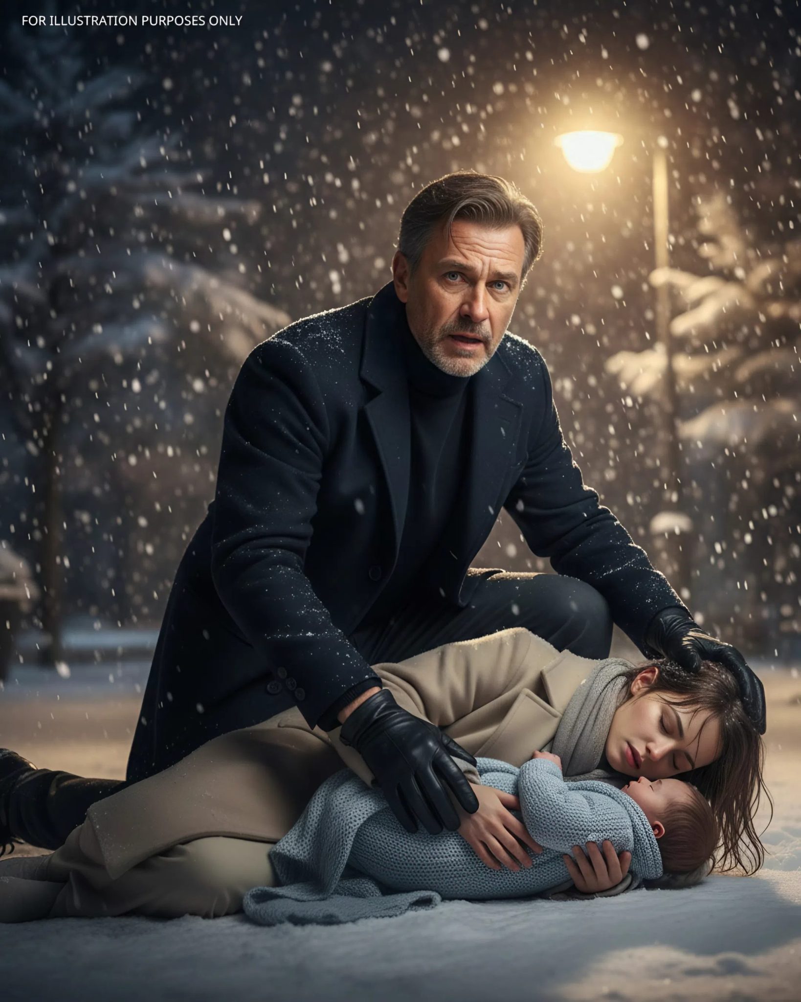 At the edge of a frozen pond, barely visible beneath the snowfall, a woman lay crumpled on the ground. For a split second, Ethan thought his mind was playing tricks on him. Then one of the small shapes in her arms moved. A weak, broken cry cut through the night.