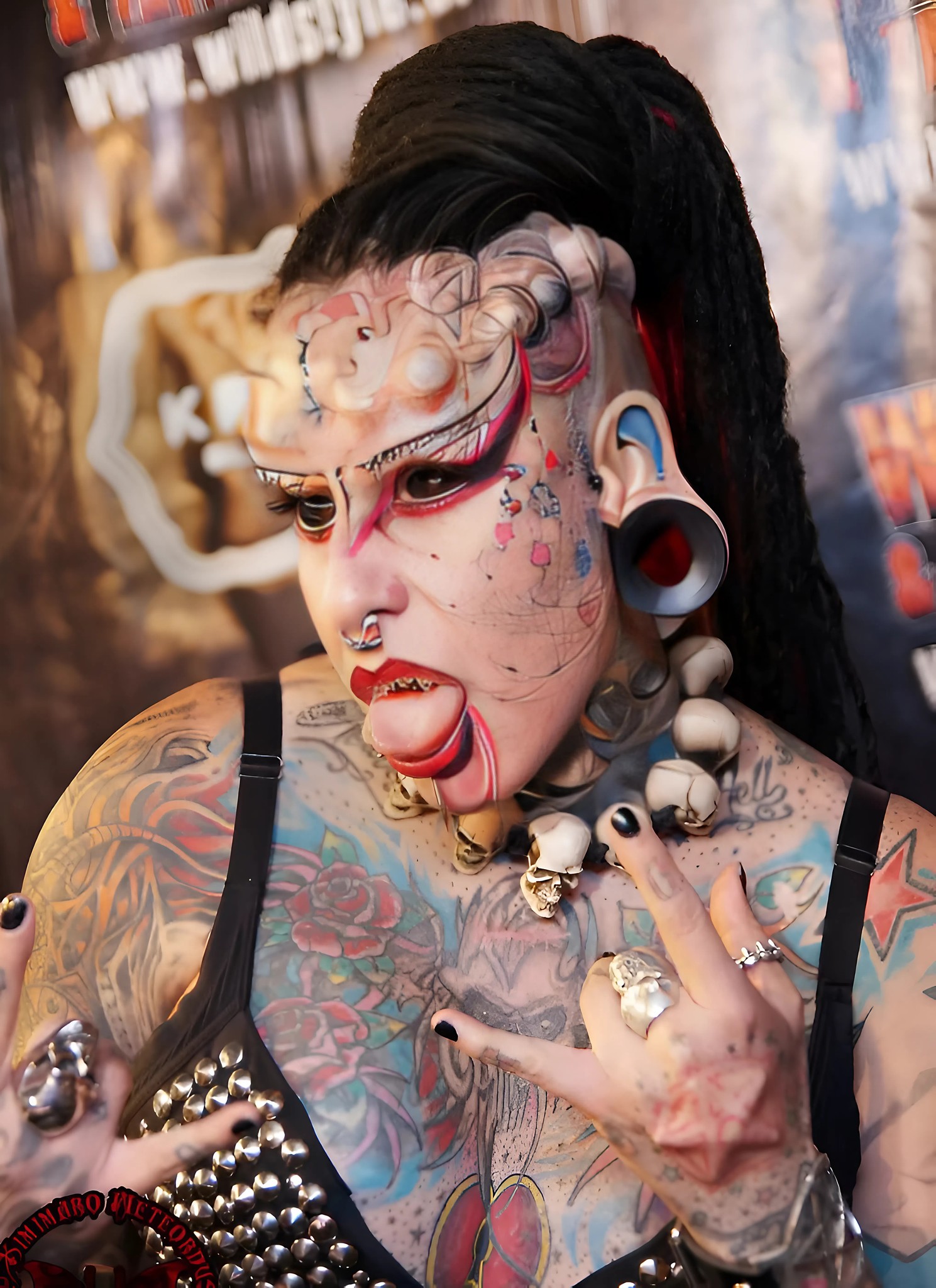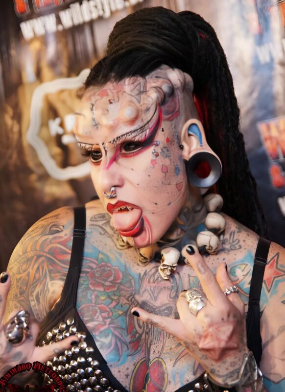 She has several implants on her forehead, which make her look even more frightening, but Maria really likes it. It seems that with each passing year, she disfigures herself more and more. Maria herself has said that she has had over a hundred tattoos done all over her body and has no intention of stopping there. In recent years, she has been constantly invited to festivals, and Maria is also active on social media, where she talks about each of her changes. Thanks to her popularity, she was able to open her own tattoo parlour. What’s more, she now has enough money to do what she really enjoys.