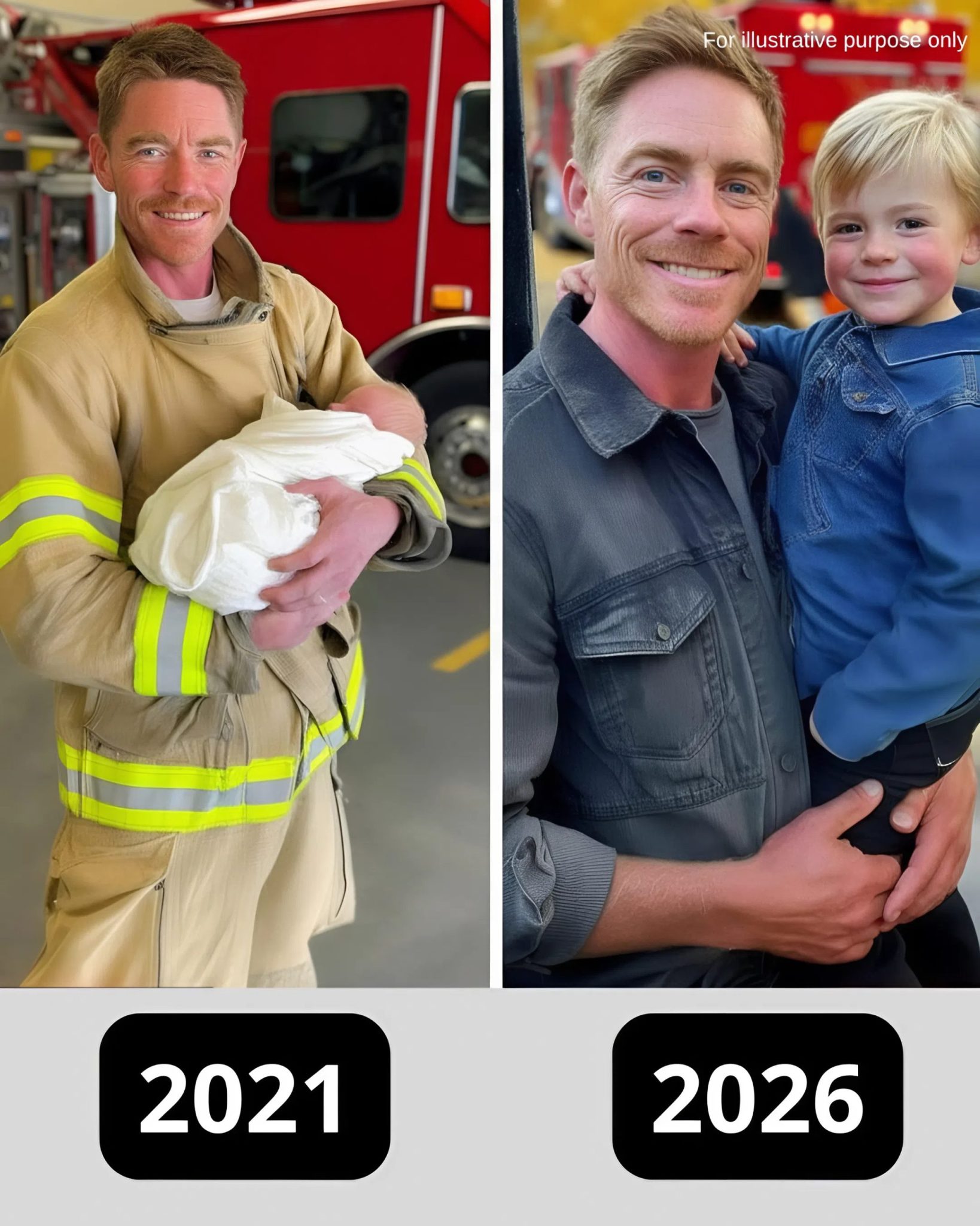 Five years ago, I found a newborn baby abandoned at my fire station—and eventually made him my son. Just when our life together finally felt complete, a woman appeared at my door, trembling with a plea that changed everything.