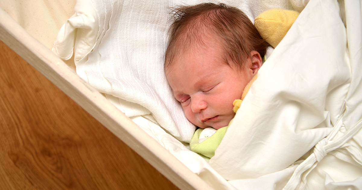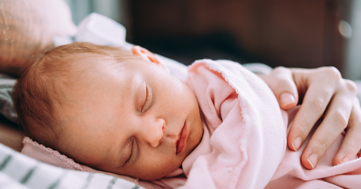 The baby was sleeping on his chest, and his hand was resting on the child’s back, protecting him.