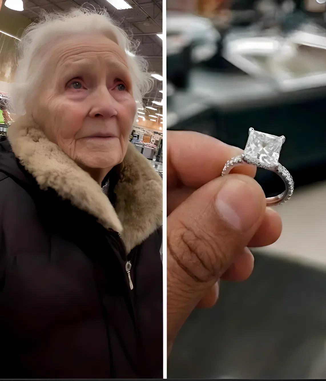 I carefully put the ring in my jacket pocket — I was going to take it to the service desk when we got to the checkout. But before I could take a step, I heard a trembling voice: