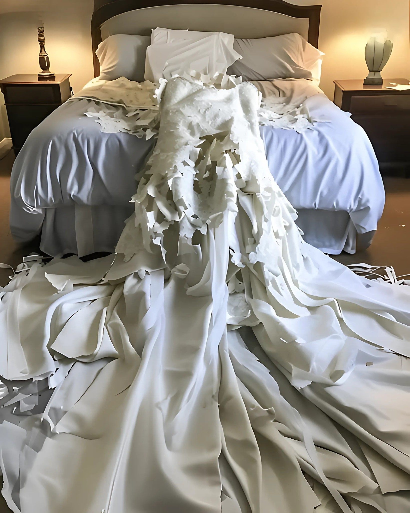 I pushed the door open and froze. Hannah’s beautiful wedding dress lay on the bed, cut to pieces from the waist down. Christina stood over it, tears streaming down her face.