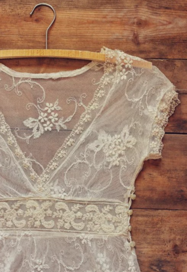 One day, I went into a small second-hand shop that my mother and I used to go to when I was a child. I told myself I would just look. And suddenly I saw it — the dress. Hidden among old clothes, simple, made of cream silk, with a high collar and lace sleeves. No glitter or sequins — just quiet, timeless elegance.