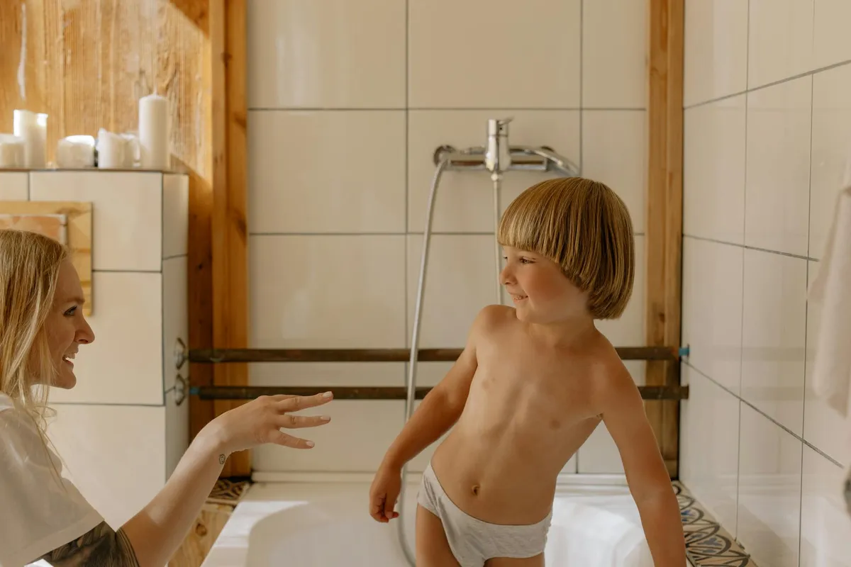 First, I went into my son’s room. He had just woken up and was rubbing his eyes.