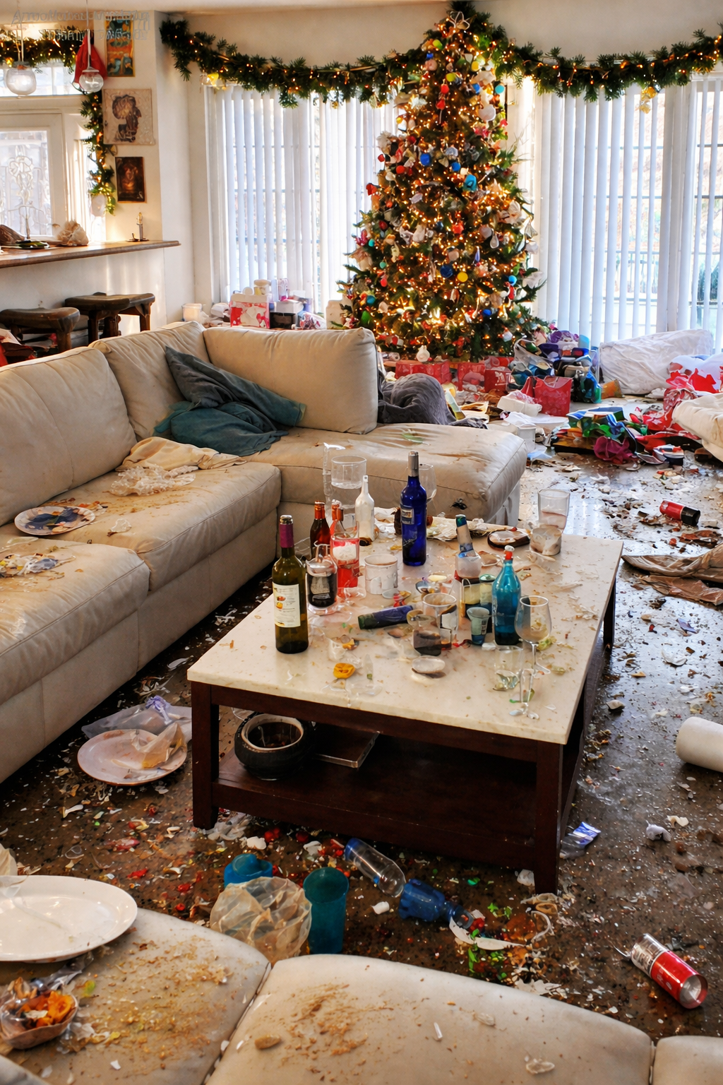 When we came back, it looked like a stranger’s party had exploded in our living room.