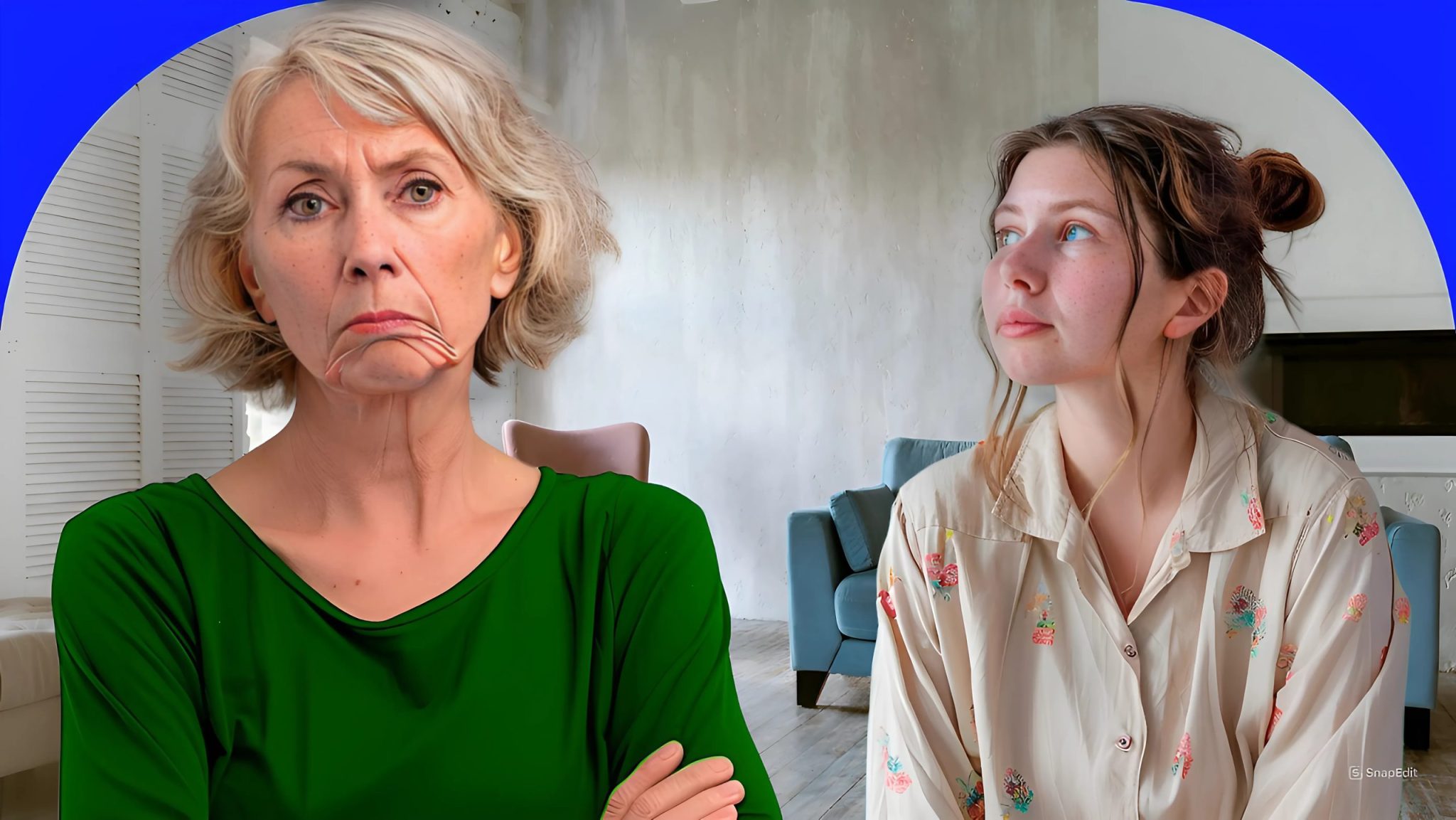 She opened the door with puffy eyes and an annoyed expression.