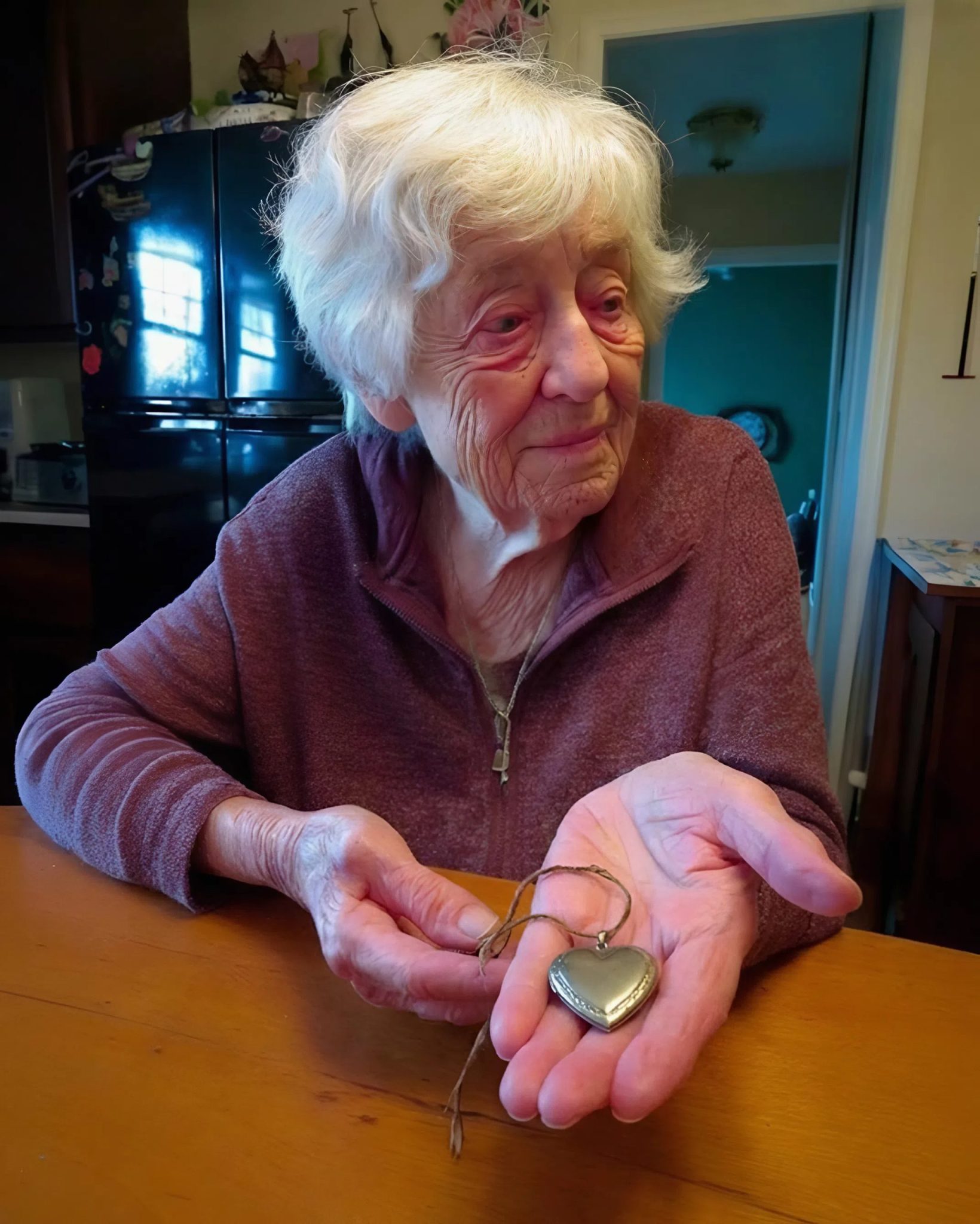 A few days later, we were packing up Mom’s house, going through the kitchen drawers, closets, and old jars full of buttons, when Ruby held up the locket by its chain.