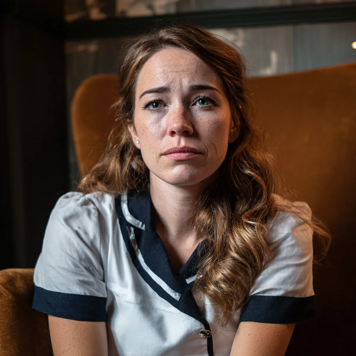I sank into the armchair across from them. My uniform clung to me, damp and uncomfortable.