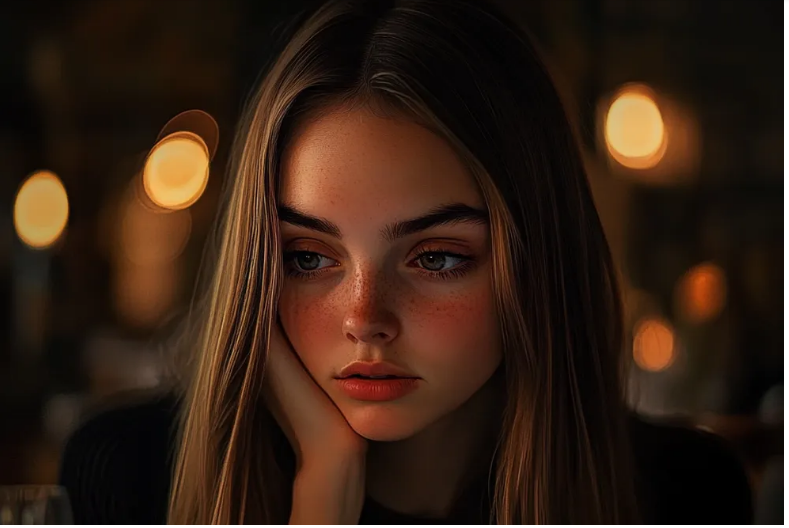 Opposite him sat a young girl, seventeen or eighteen years old. Her face was animated, her hands gesturing as she spoke. Next to her sat an older woman — closer to my age, but dressed in a way that screamed ‘trying to impress.’