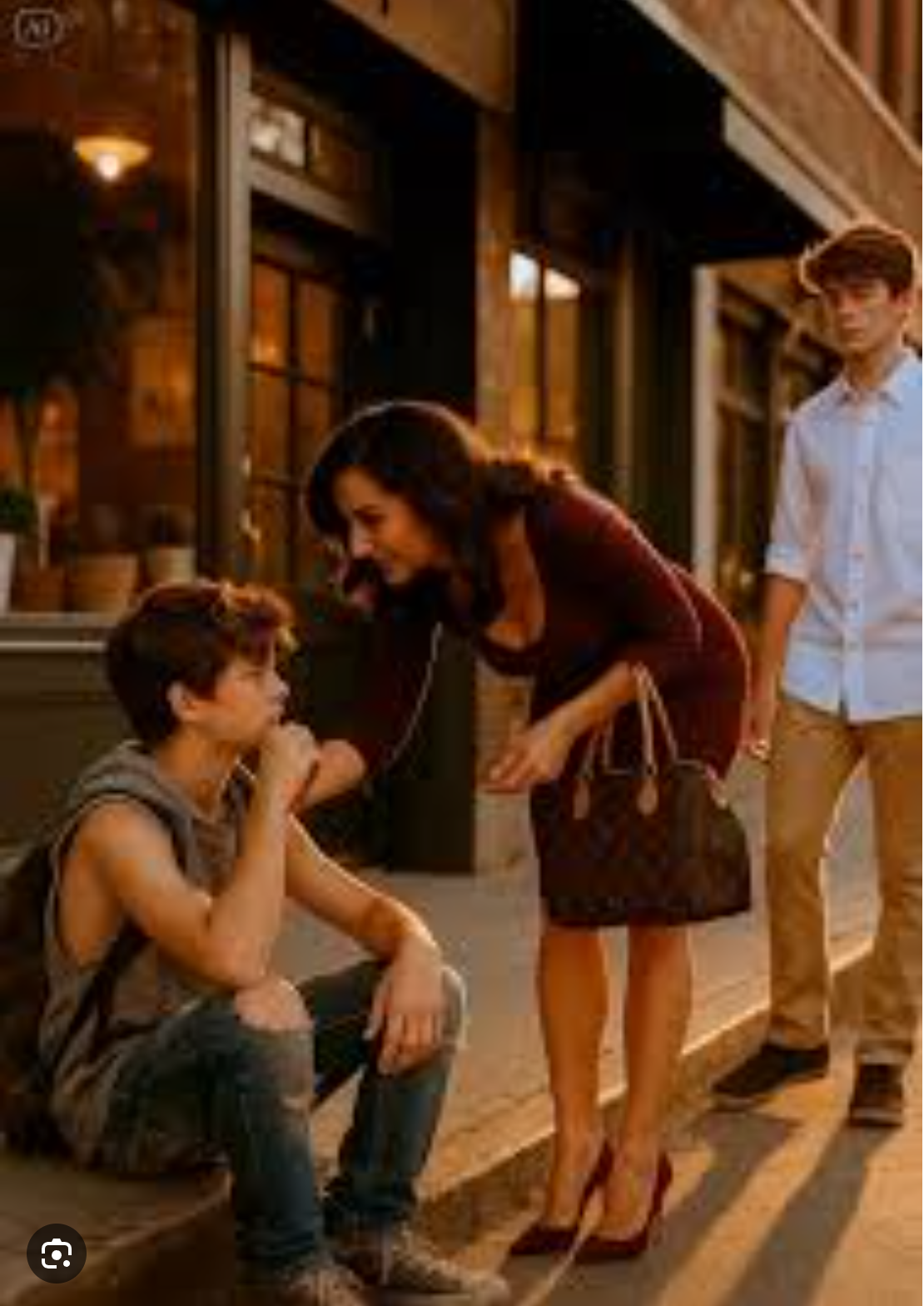 The past she had buried for years — the one she had sworn Noah would never know about — had just risen from the pavement corner, alive, broken, and staring right at her.