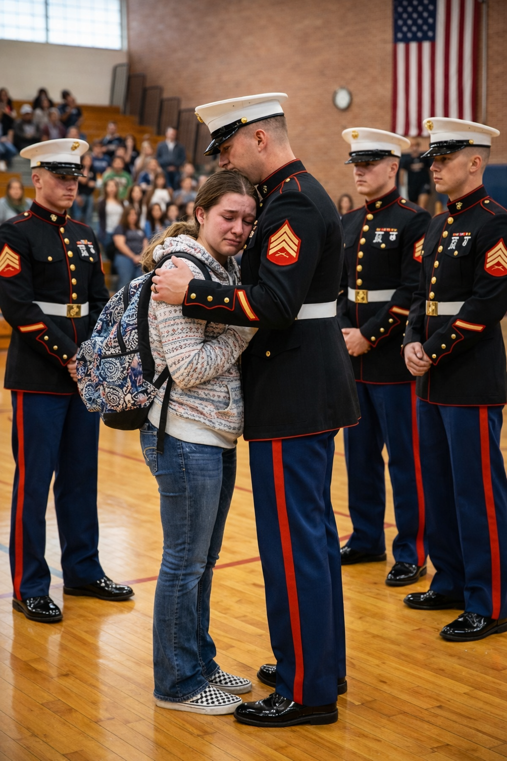 She let out a small, stunned laugh. “No, not like that. Mom… they brought a flag. Everyone had to stand. The principal said they were already planning to contact us this week, but then someone told them what happened yesterday.”