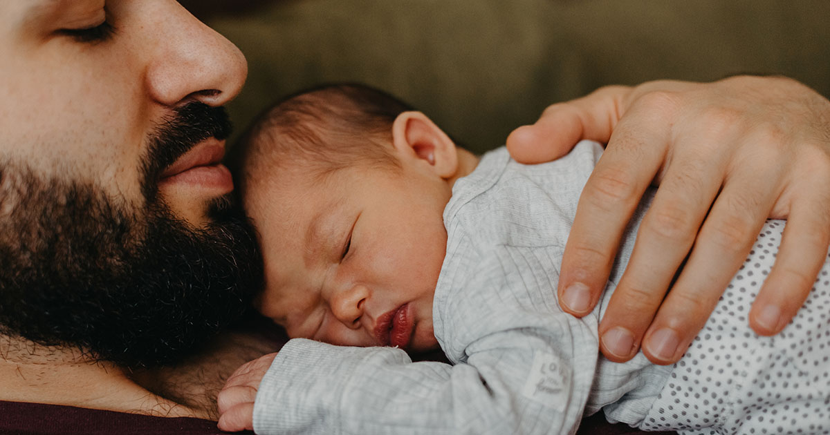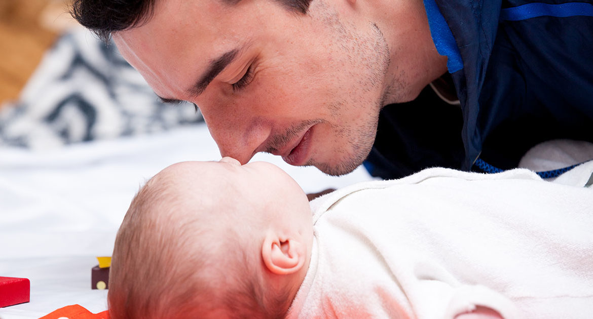 He sat on the couch. Daniels gently placed Theo in his arms.