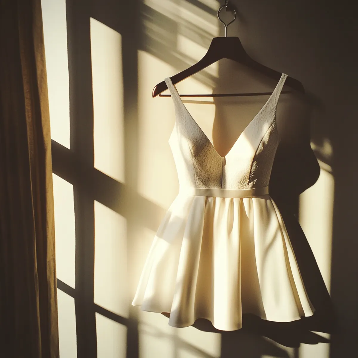 Together, we transformed the original design into something completely new. A chic, short, cocktail-style dress that was bold, unconventional, and a bit edgy for a wedding.