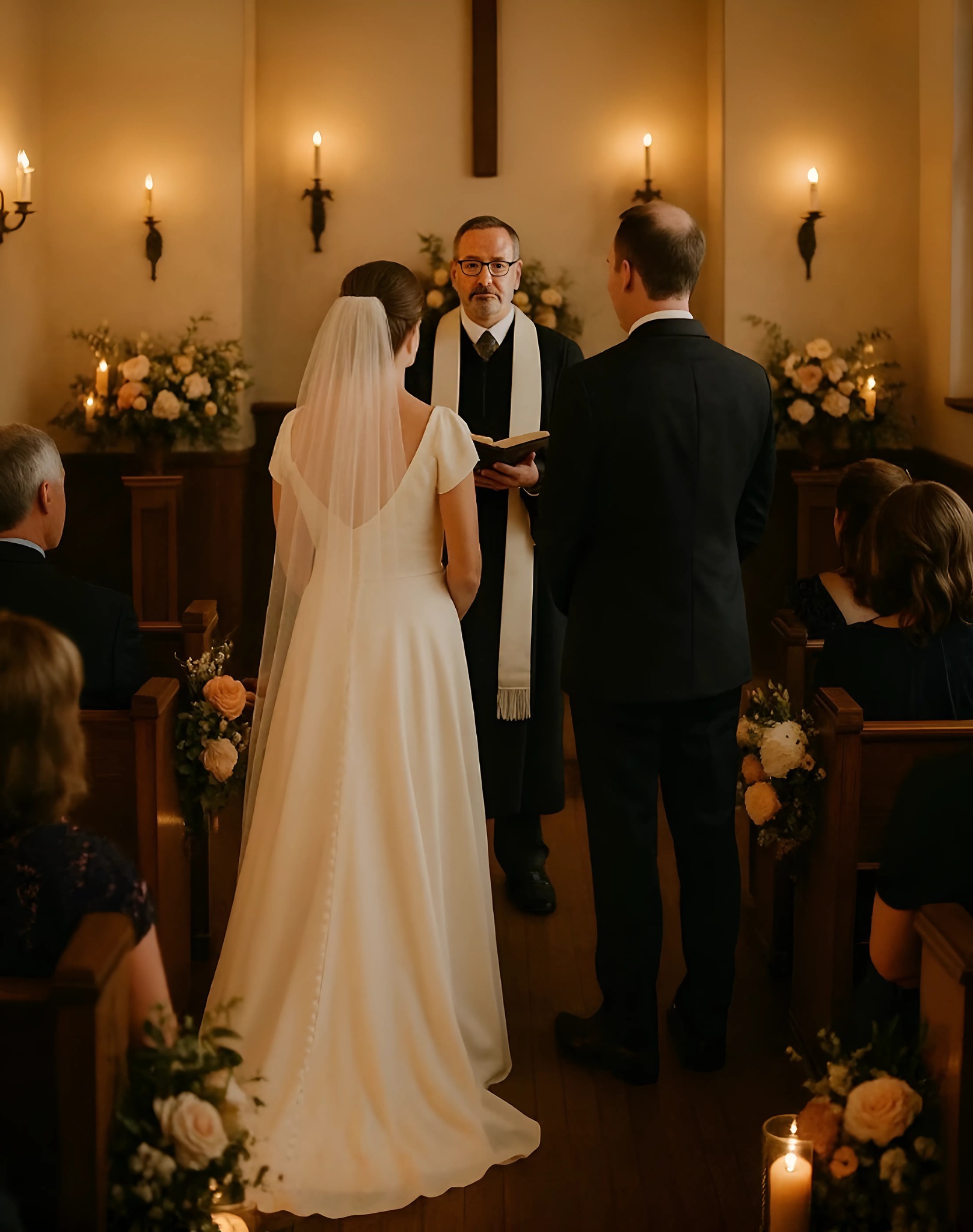Back inside, the reception was in full swing. The room glowed warmly with candles and laughter. People clinked glasses and posed for photos in front of the flower wall. Rowan was radiant in her ivory dress, seated beside Arthur, who looked every bit the proud husband. It was surreal.