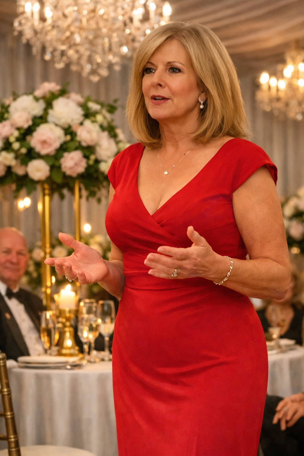 Then Elena rose from her seat, her presence drawing every eye in the room.