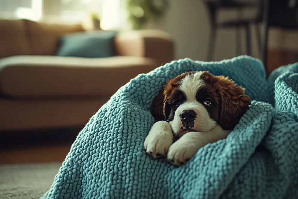 The bundle stirred, and a tiny Saint Bernard poked its head out, wagging its tail furiously. Sophie knelt down and giggled when the puppy licked her face.