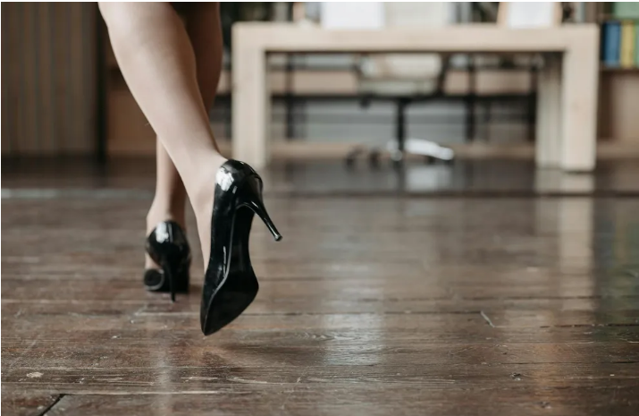 I heard the front door open, followed by the unfamiliar sound of heels clicking on the floor.