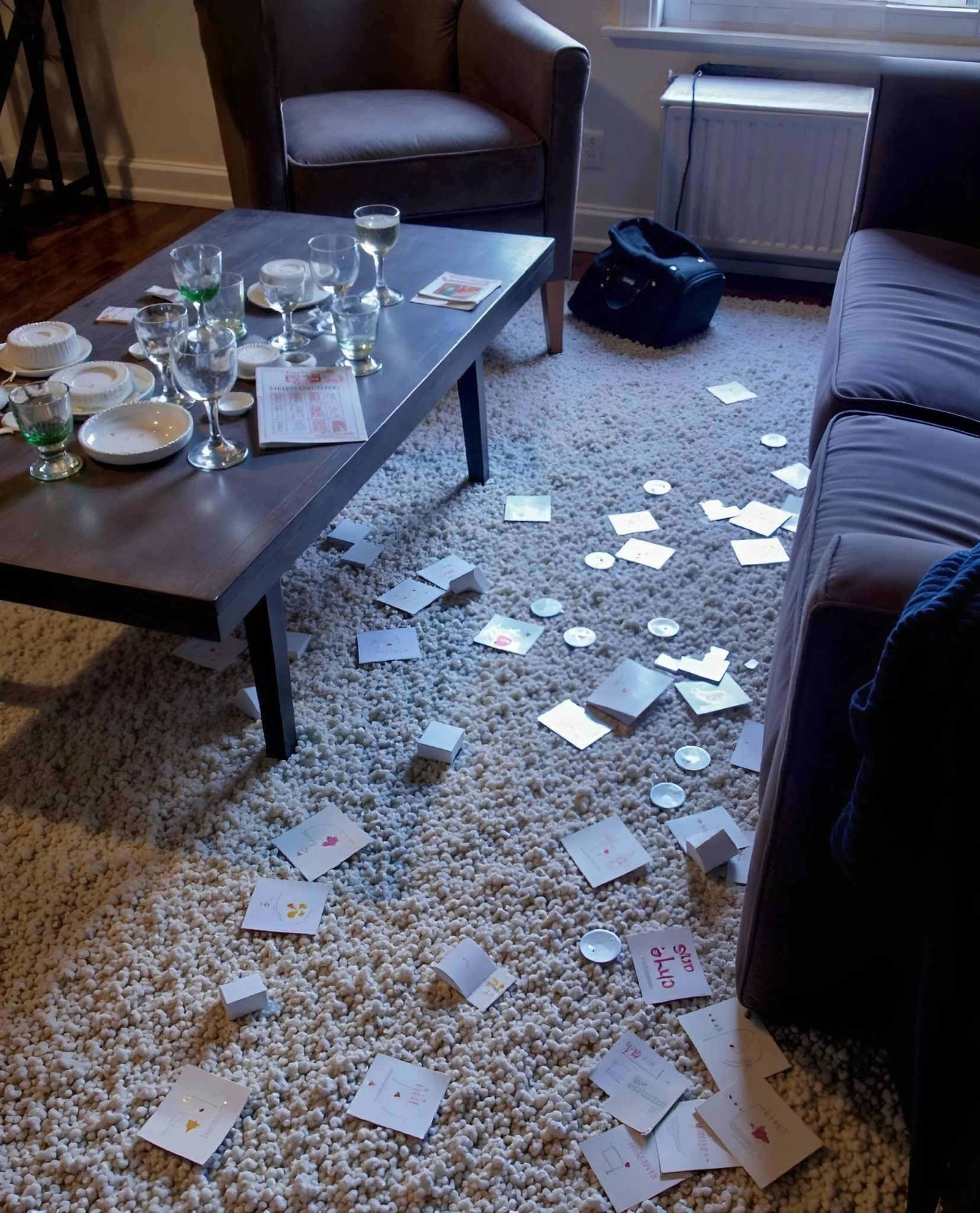 “Oh Jen!” she gasped in a theatrical performance. “I’m so clumsy. I knocked over the whole cabinet while looking for something.”