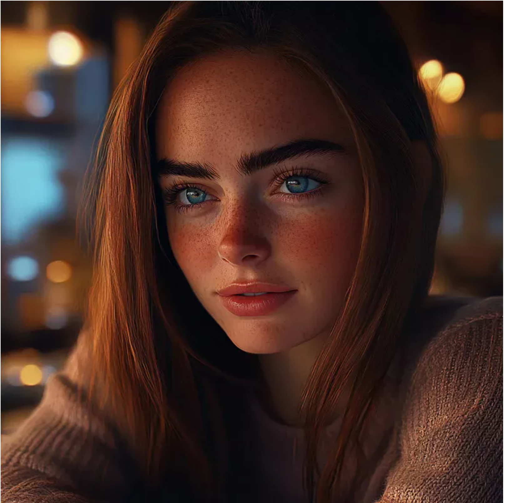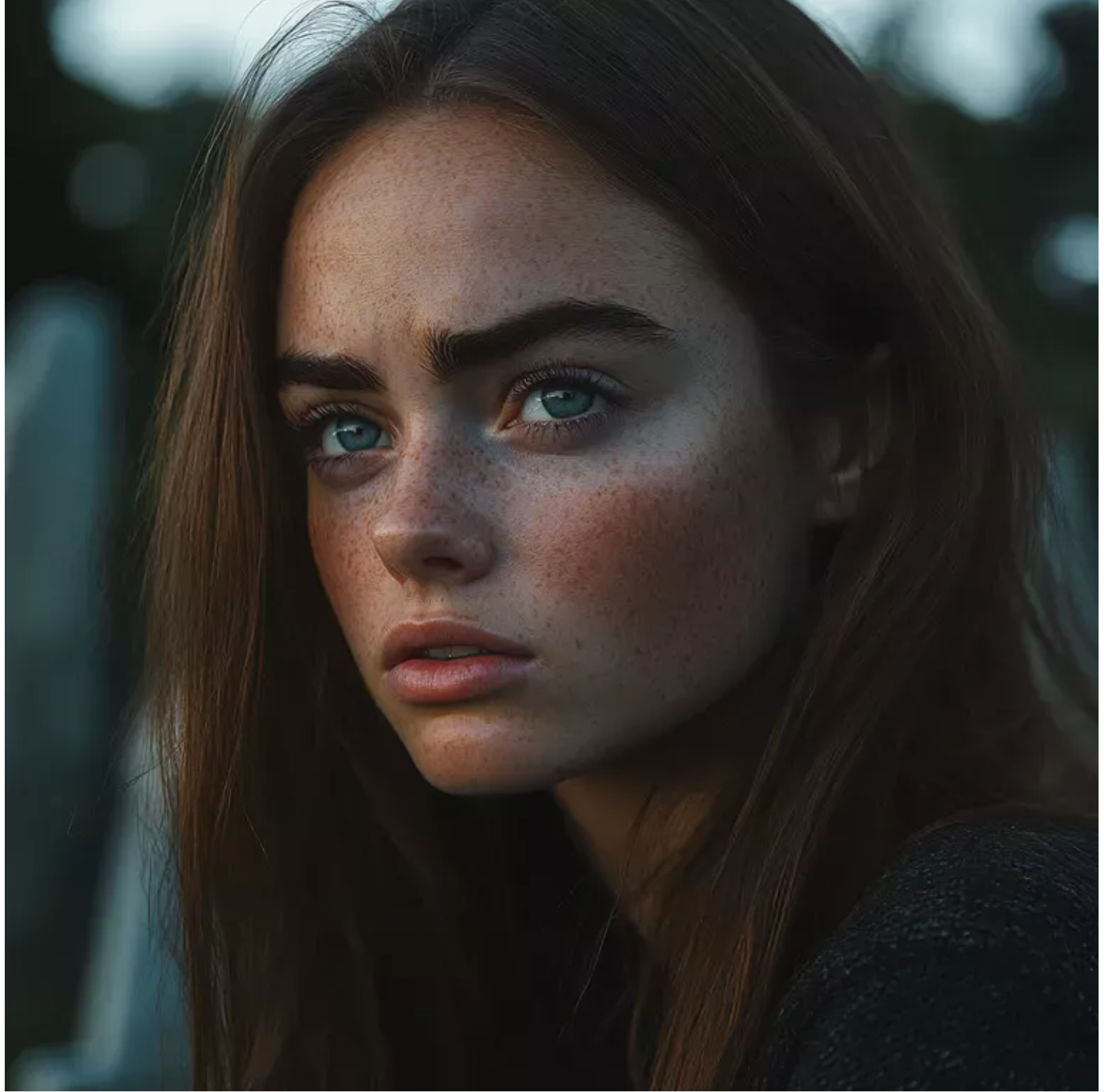 She didn’t answer immediately. Instead, she slowly pushed back the hood of her sweatshirt.