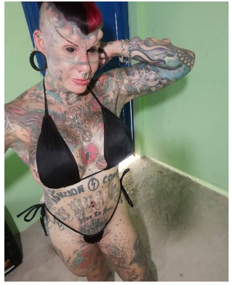 Her photos were in almost every public forum. Many call her a vampire, because that’s what she looks like most. But no one knows who is hiding behind the tattoos, piercings and phenomenal transformation.