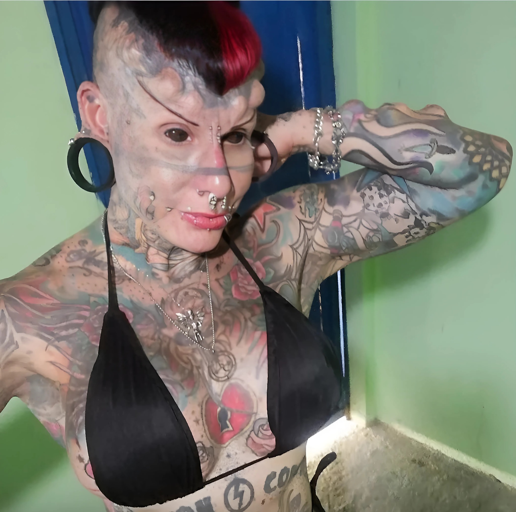 But her journey is not limited to her appearance. Behind the ink and piercings lies a powerful story of self-expression, personal transformation, and a message for those who may be considering a similar path.