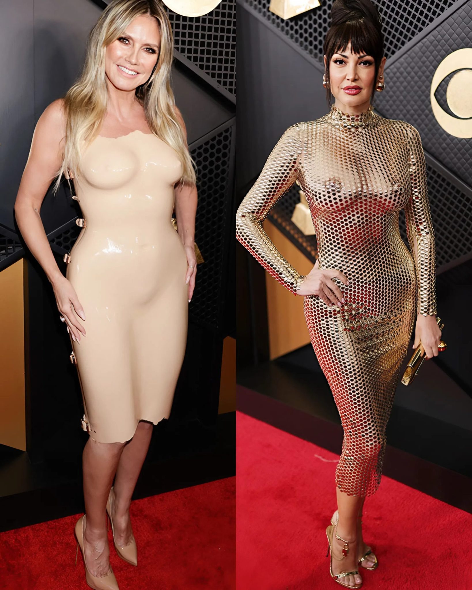 Presenting the award for Best Pop Dance Recording, the singer emphasised provocation. Her latex dress with a see-through effect seemed to challenge the classic red carpet conventions.
