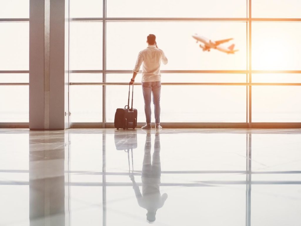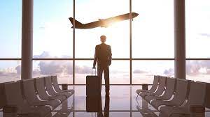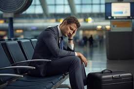 He stood up abruptly and walked over to the airline counter.