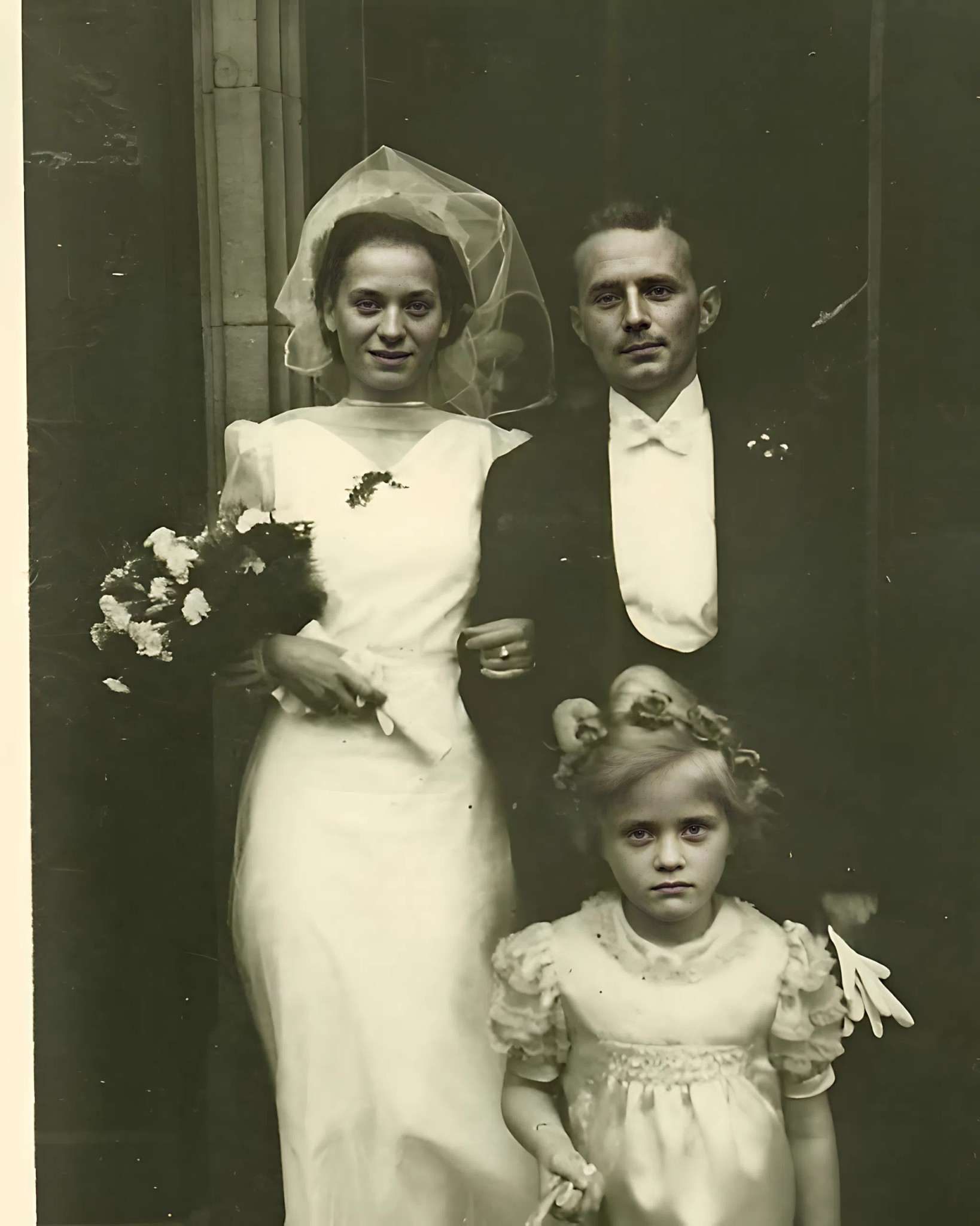 At first glance, it was an ordinary old wedding photograph. The bride was wearing satin, the groom a formal suit, both with impassive faces, as was customary at the time. But my attention was drawn to the little girl standing in front of them.