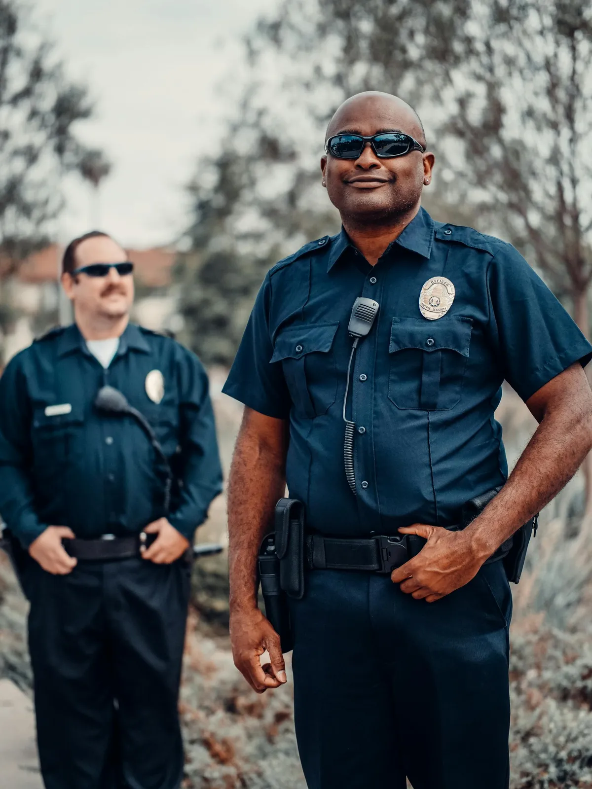 Two police officers walked through the café door, rain dripping from their uniforms.