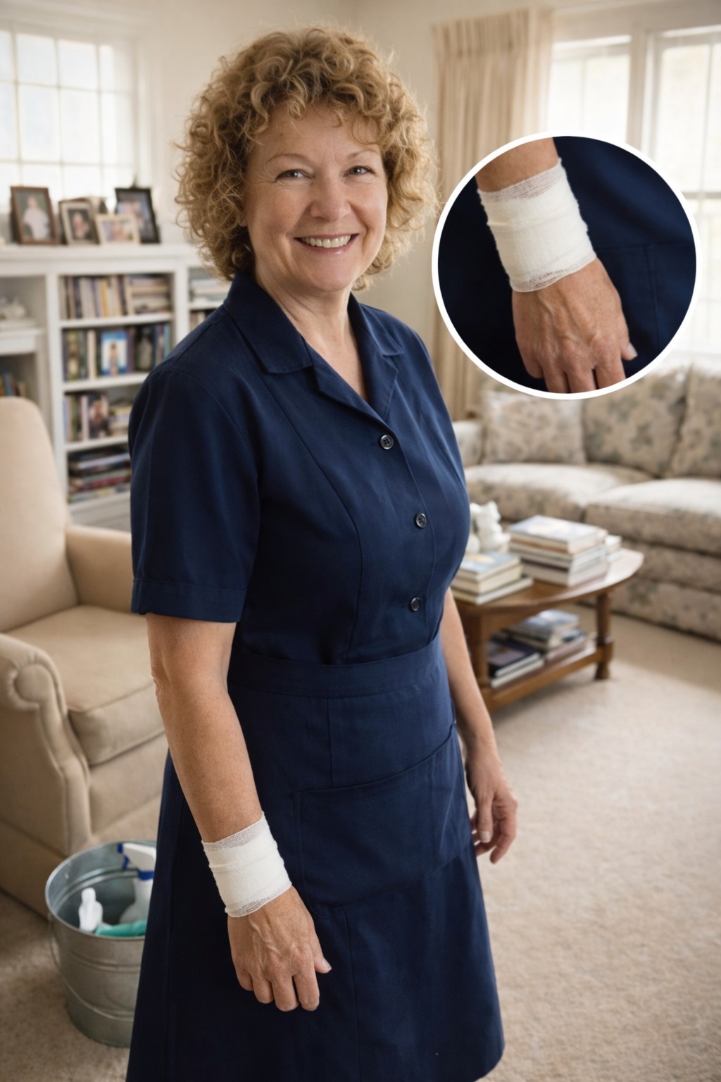 That day, my son accidentally bumped into her in the corridor. A basket of laundry slipped from her hands. The edge of the plaster on her wrist came loose slightly, and for a split second I saw something beneath it.