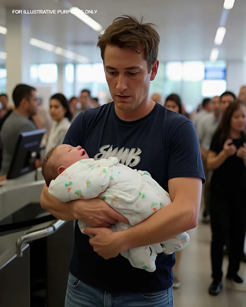 David stood at the airport check-in counter, his newborn daughter, Lily, cradled in his arms. His eyes were red-rimmed with exhaustion and grief, but he held himself together as best he could. The baby stirred against his chest, letting out a soft whimper before quieting again.